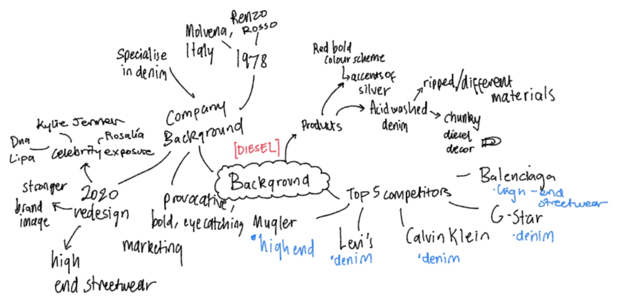 When diving into Diesel's features, aesthetic, and website ideas, it is crucial to grasp the key elements that require attention. Visualizing potential design solutions through quick-fire sketches breathes life into the brainstormed concepts.