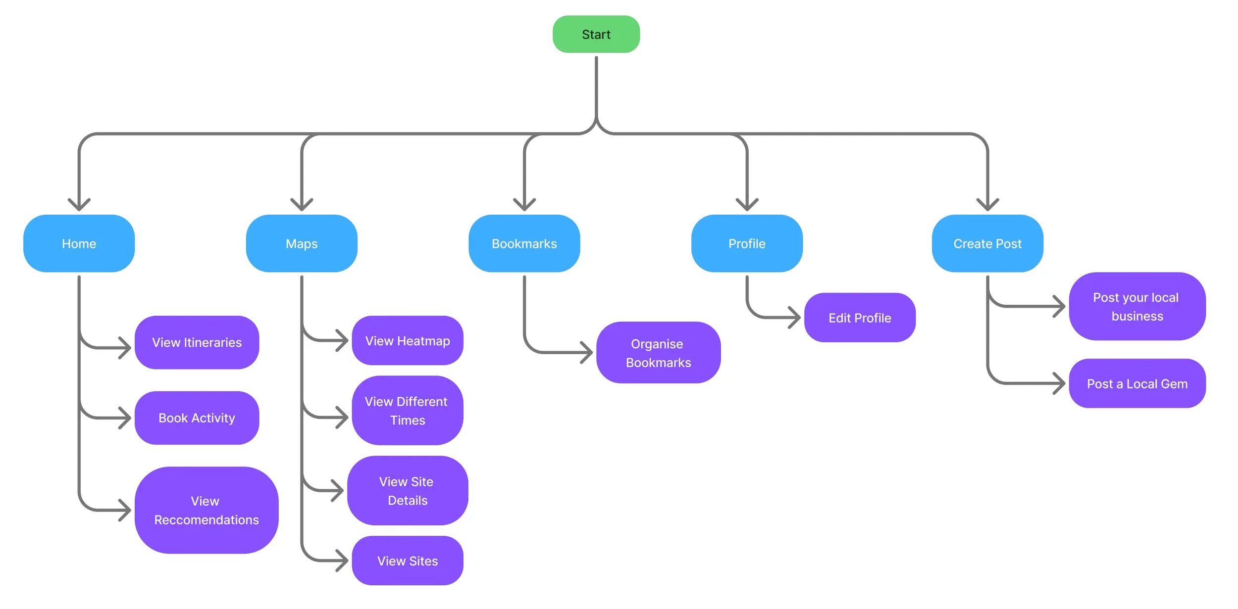 Based on my research, I wanted to focus on creating exposure for lesser known businesses, and creating a seamless experience for travellers to find and book places and activities.